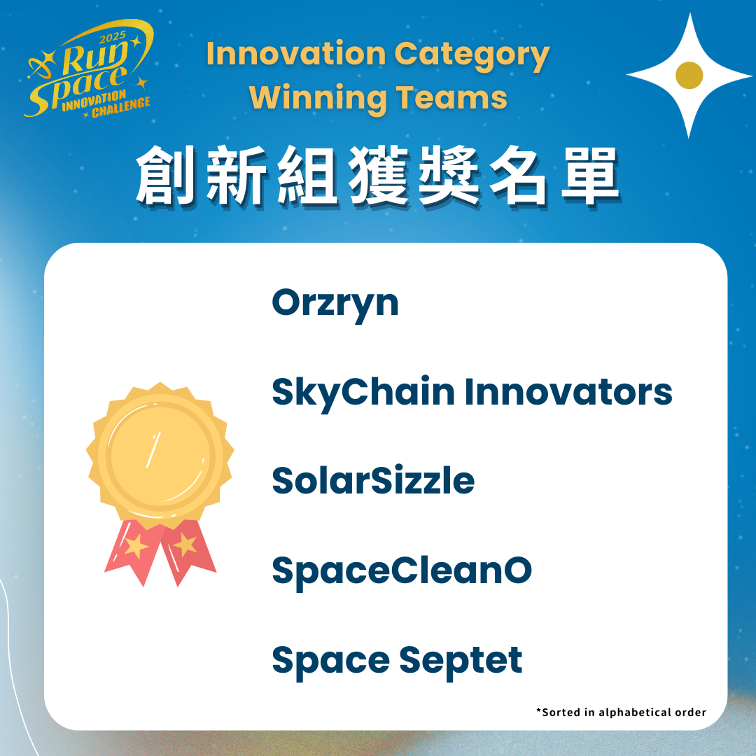 Thank you for all the shortlist teams participated the final competition last week. We are honored to announce the following teams as the winners of the “Innovation Category” in 2025 RunSpace Innovation Challenge. Congratulations!